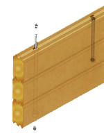 The planks are stacked lengthwise on top of each other and fastened with nails, screws and threaded rods. This creates a solid connection between the beams