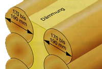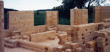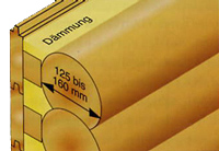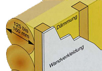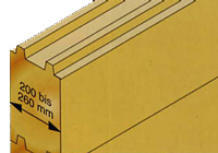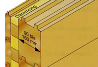 With single-layer log house systems, the log house wall is visible inside and outside and there is no additional insulation. To achieve performing thermal insulation values, wood thicknesses should be within 200 mm and 500 mm.