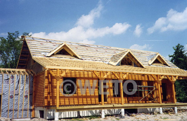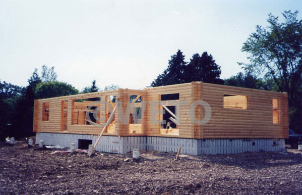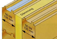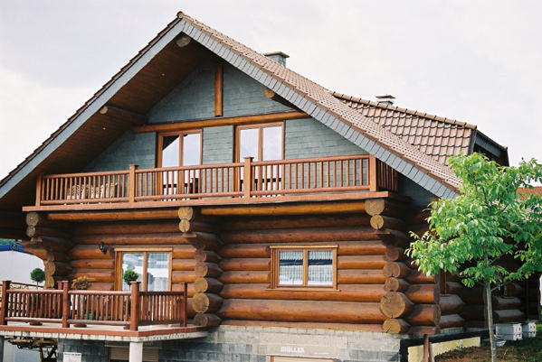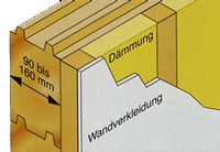 In case of multiple-layer log house systems, there are various design options. However, the approach is always the same. In order to achieve a better thermal insulation value, 2 visible layers are created and in the middle, between them, an insulation layer will be added. With this construction method, wind protection and thermal insulation is therefore easier and better to guarantee than with a single-layer only.