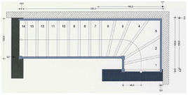 - B vagy U (karok) lépcső pihenővel/pihenőkkel