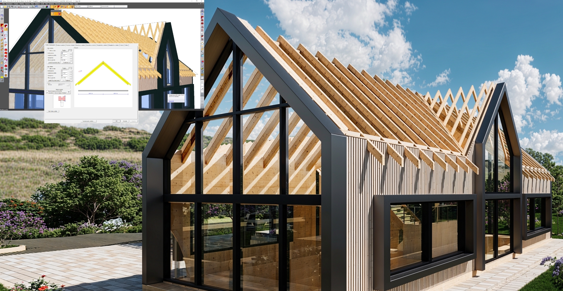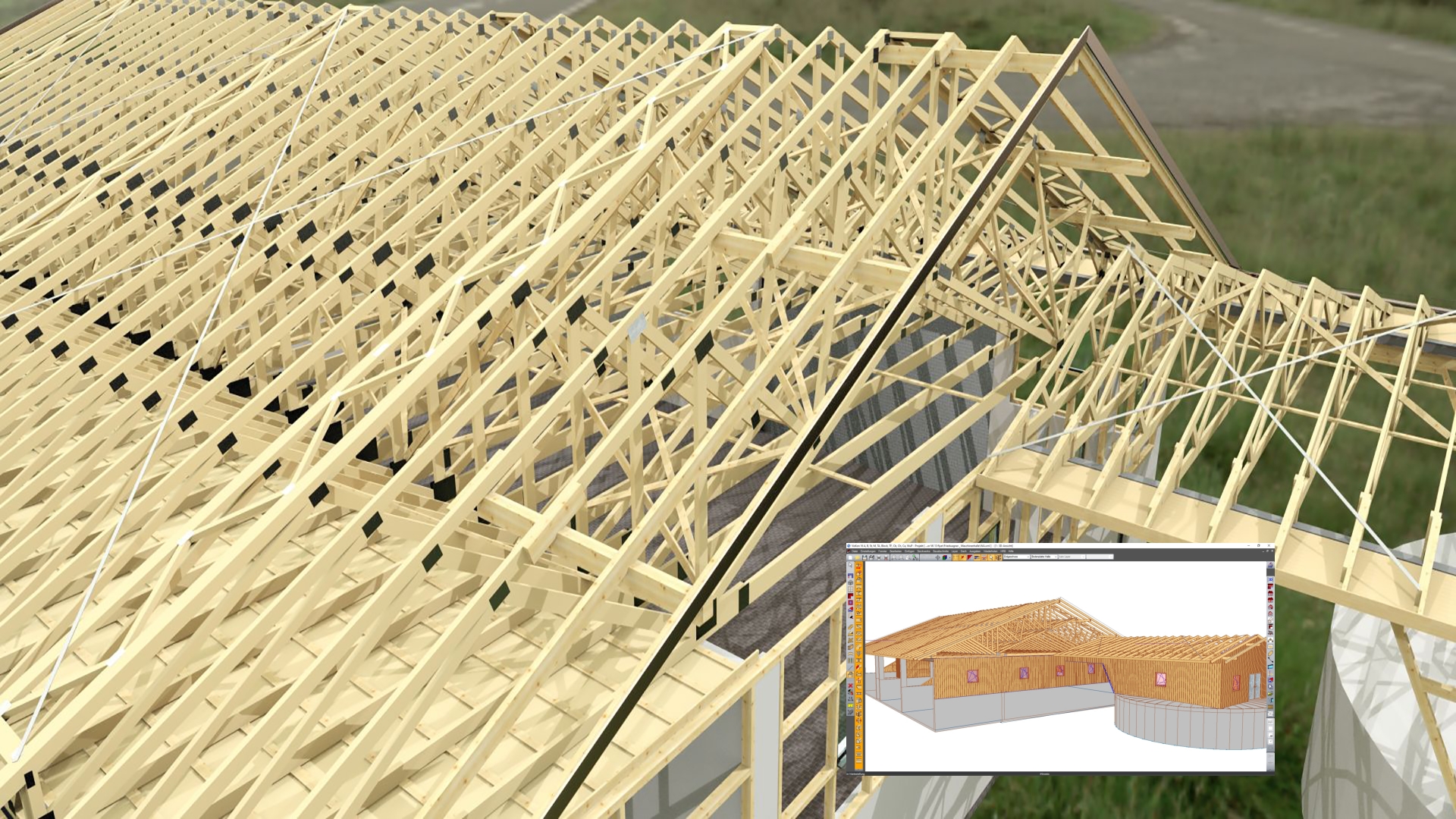 A VisKon az ideális BIM és 3D CAD/CAM megoldás faszerkezetekhez, könnyen használható és elsajátítható. Természetes módon rajzolhat, majd azonnal elkezdheti a szerkezetek gyártását az összes műszaki rajz és/vagy a vágáshoz szükséges CNC-k automatikus beszerzésével.