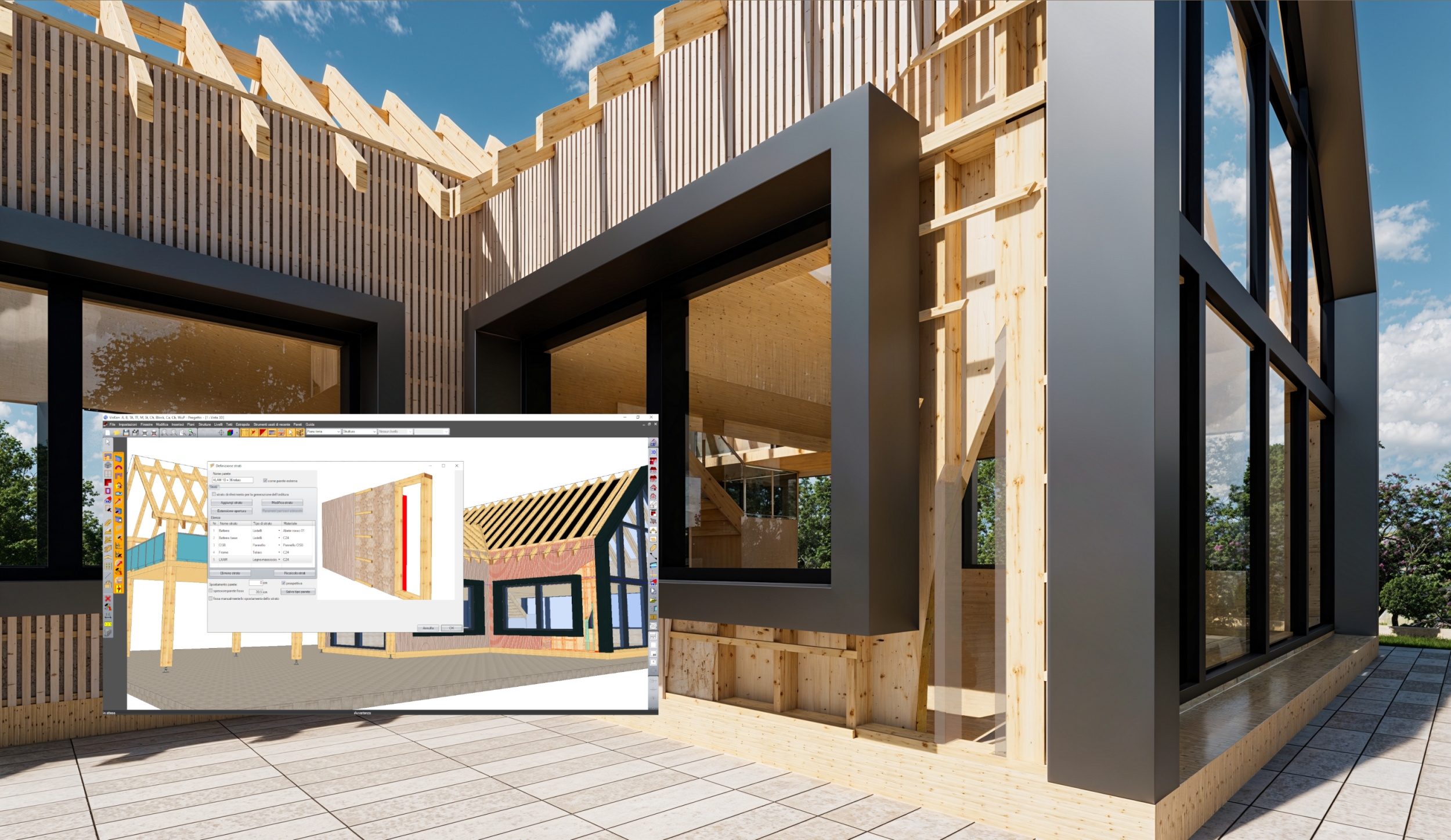 Nomen (est) Omen mondták a latinok, nos, a VisKon 3D CAD/CAM is a nevében hordozza a lényegét. A német Visuelle Konstruktion szóból ered, ami vizuális konstruktort (Builder) jelent, nevezetesen egy 3D (és 2D) grafikus munkakörnyezetet, amelyet fa szerkezetek egyszerű és áttekinthető tervezésére és építésére terveztek. A hagyományos szoftvereket ezzel szemben 2D-ben tervezik, és a 3D ennek az eredménye. Ez a megközelítés nemcsak bonyolultabbá teszi a használatukat, de több időt és energiát is igényel a tanuláshoz, és a nézetek közötti állandó váltás gyakran időpazarló hibákhoz vezet.